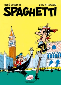 In arrivo alla 71a Mostra del fumetto Anafi di Bologna (BolognaFiere, 29-30 novembre 2025), ecco il primo volume omaggio destinato ai soci Anafi 2026. Alla continua ricerca di una onesta forma di sostentamento, il signor Spaghetti è il simpatico emigrante italiano che tenta di svolgere qualsiasi tipo di lavoro, accumulando errori su errori in ogni mestiere dal lui affrontato. Ma è quando si associa al cugino Prosciutto, sua nemesi, suo tormento, complice e capro espiatorio, che la sua vita si trasforma in un esilarante disastro… Create nel 1957 dall’italiano Dino Attanasio (Milano, 8 maggio 2025, arzillo signore centenario) con il supporto alle sceneggiature da parte di René Goscinny, le stravaganti disavventure del signor Spaghetti hanno divertito per oltre dieci anni i lettori del settimanale Tintin e in questo volume vengono raccolti per la prima volta in Italia i migliori episodi della serie, per la precisione si tratta di cinque storie. Attanasio è un autore dotato di una vis comica straordinaria, un vero maestro del genere, ingiustamente misconosciuto in Italia. In coedizione con Nona Arte bèdé/ReNoir Comics, a cura di Andrea Rivi e Alberto Brambilla, da un’idea di Mauro Giordani. 160 pagine a colori, brossurato, cm 21,5×29,7.